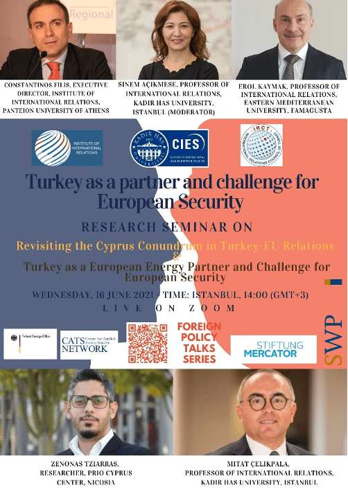 Uluslararası İlişkiler Konseyi (UİK), Kadir Has Üniversitesi Uluslararası İlişkiler ve Avrupa Çalışmaları Uygulama ve Araştırma Merkezi (CIES) ve Atina Panteion Üniversitesi Uluslararası İlişkiler Enstitüsü (IIR) ortaklığıyla hazırlanan ve Stiftung Wissenschaft und Politik (SWP) Center for Applied Turkey Studies (CATS) iş birliği ve desteğiyle devam eden proje çerçevesinde yapılan araştırma seminerlerinin üçüncüsü, 16 Haziran tarihinde kamuoyuna açık olarak gerçekleştirildi.