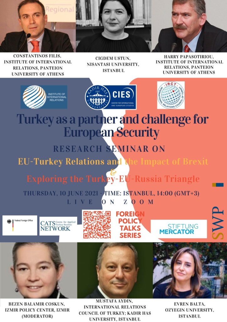 Uluslararası İlişkiler Konseyi (UİK), Kadir Has Üniversitesi Uluslararası İlişkiler ve Avrupa Çalışmaları Uygulama ve Araştırma Merkezi (CIES) ve Atina Panteion Üniversitesi Uluslararası İlişkiler Enstitüsü (IIR) ortaklığında gerçekleştirilen ve Stiftung Wissenschaft und Politik (SWP) Center for Applied Turkey Studies (CATS) desteğiyle devam eden proje çerçevesinde hazırlanan politika notlarının sunumları devam ediyor.