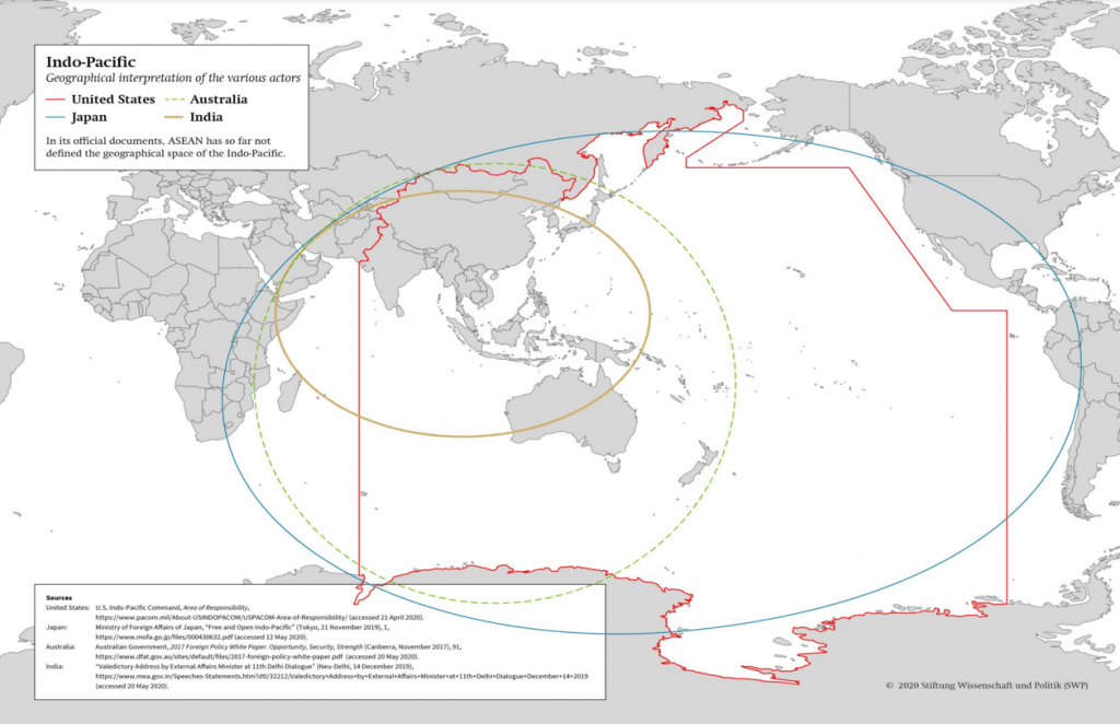 [12] Felix Heiduck and Gudrun Wacker (2020). “From Asia-Pacific to Indo-Pacific: Significance, Implementation and Challenges.” SWP Research Paper 9, p.10, https://www.swp-berlin.org/publications/products/research_papers/2020RP09_IndoPacific.pdf